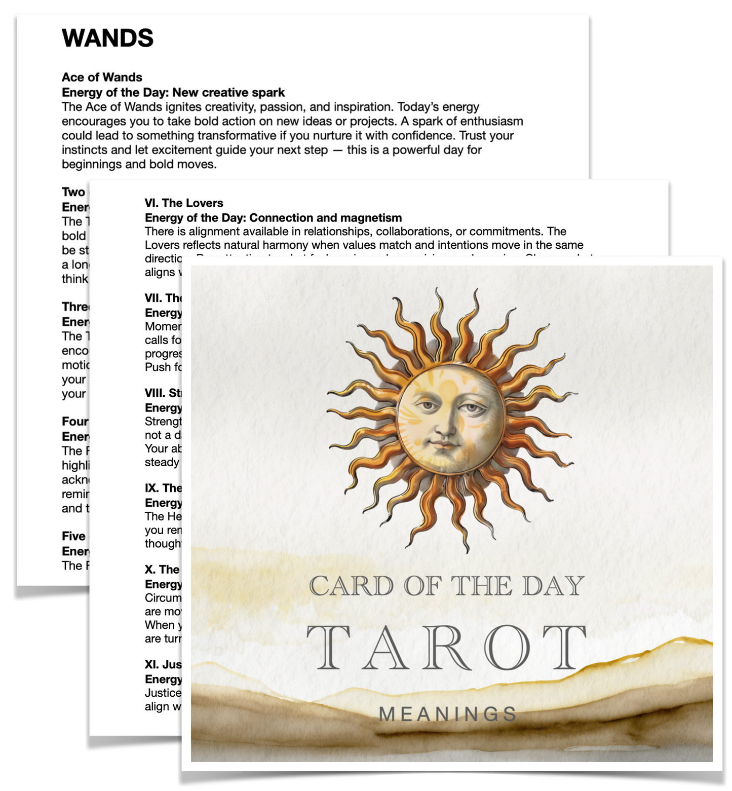 This guide is meant to support your intuition, not replace it — giving you a consistent daily anchor as you build your own relationship with the cards.