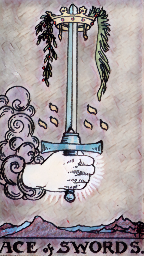 Upright: New opportunity, idea, mental breakthrough, clarity, new opportunity, exciting idea. Reversed: Beginning of conflict, confusion, stress.